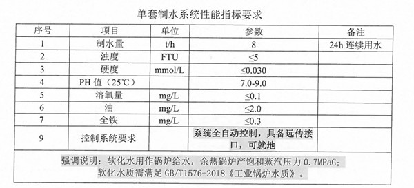 为制水系统提供的原水为厂区内自来水,进水压力0.3MPa(G)
